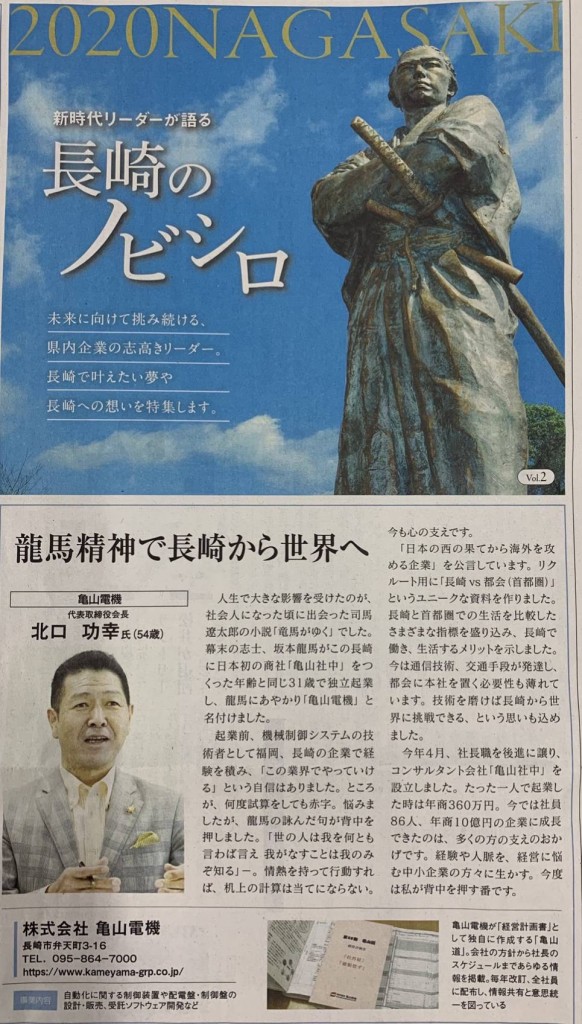 先日、長崎新聞社様にて掲載していただきました。